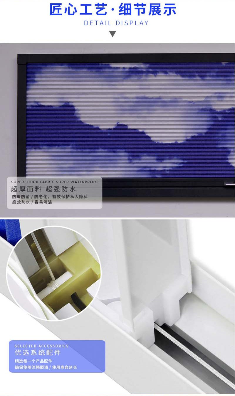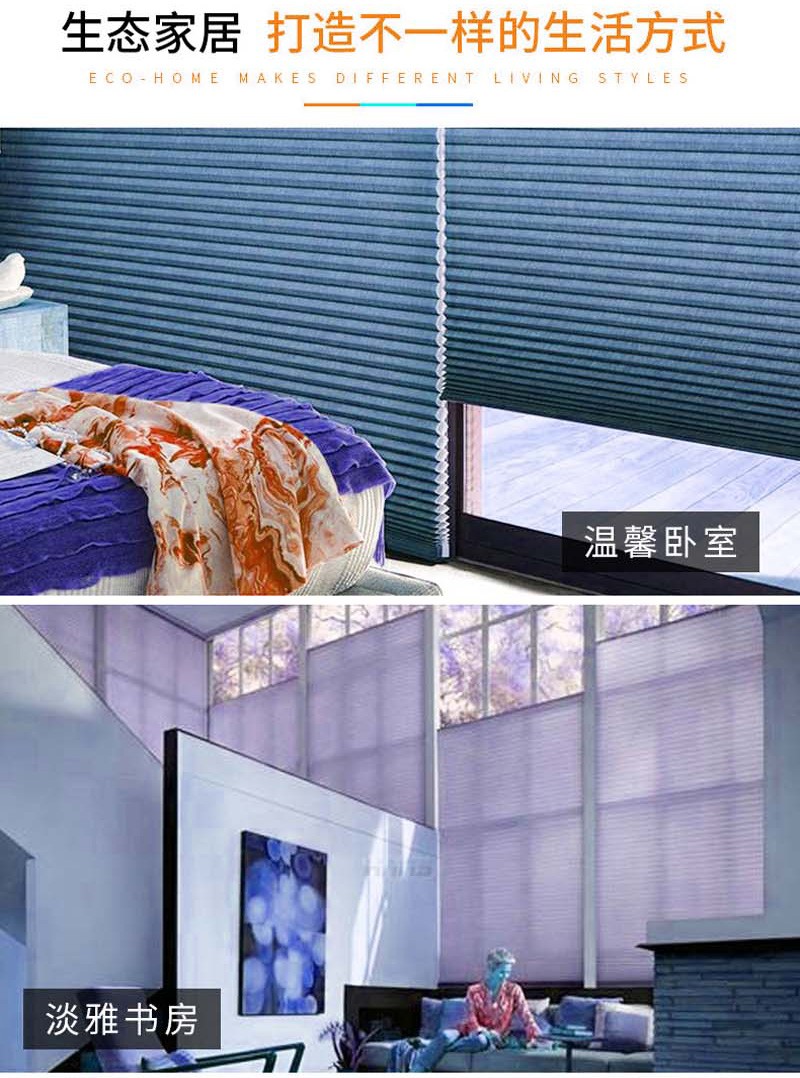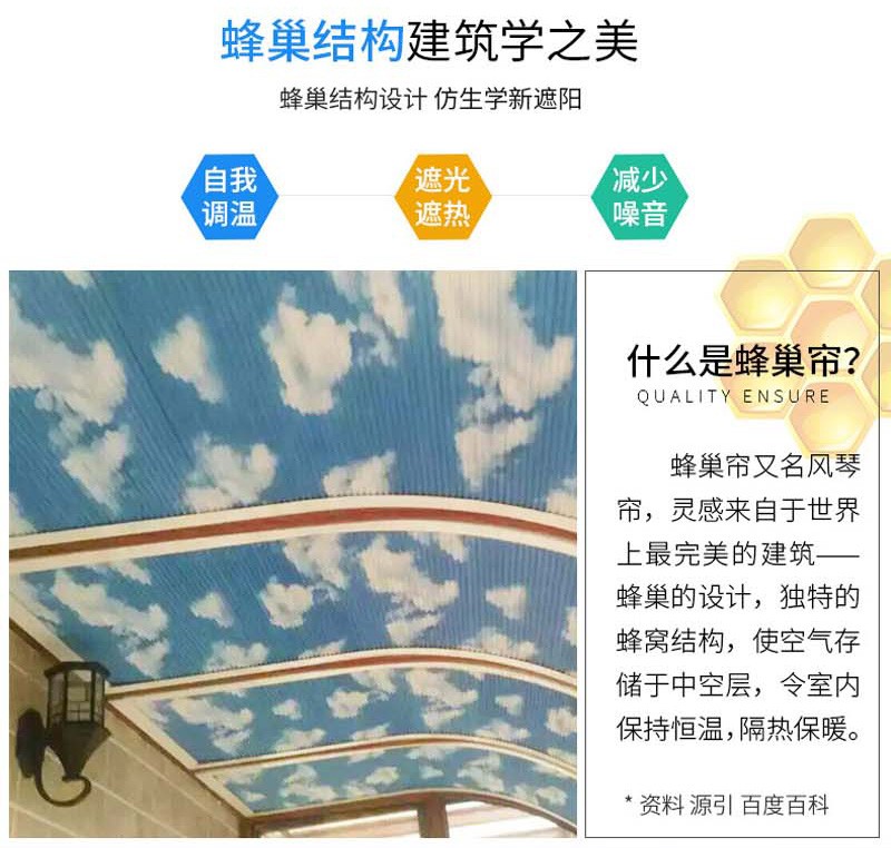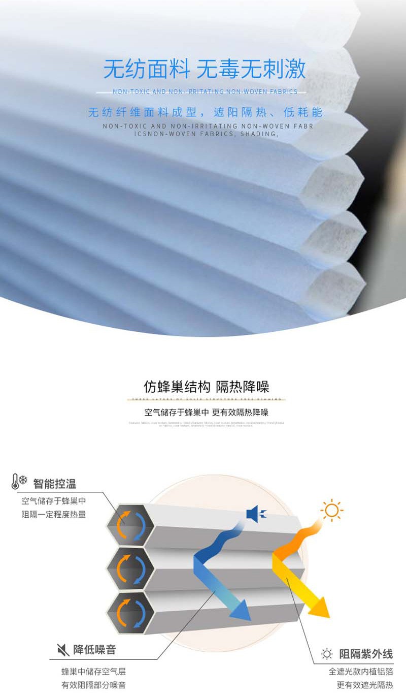 蜂巢簾又名風琴簾,靈感來源與世界上最完美的建筑--蜂巢的設計,獨特的蜂窩結構,使空氣存儲于中空層,令室內保持恒溫,隔熱保暖。