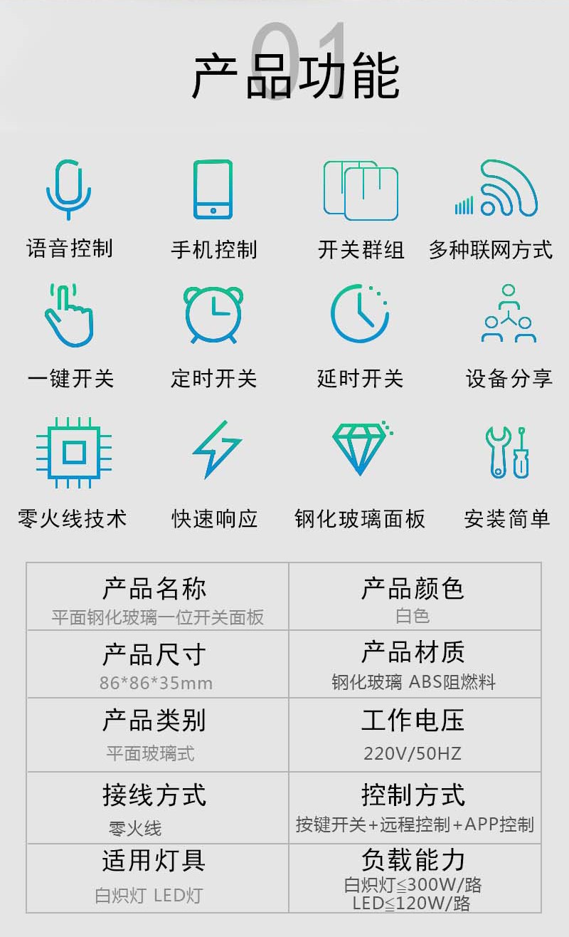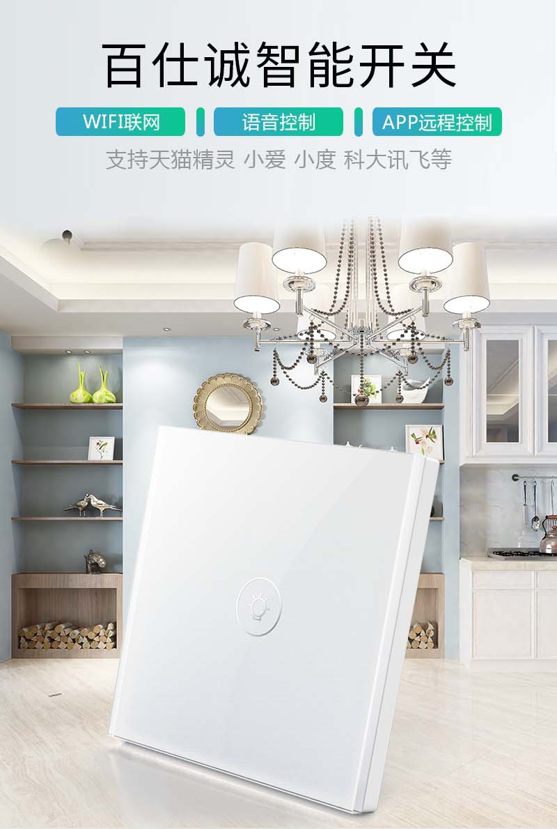 智能觸控平面鋼化玻璃式一位開關面板_百仕誠
