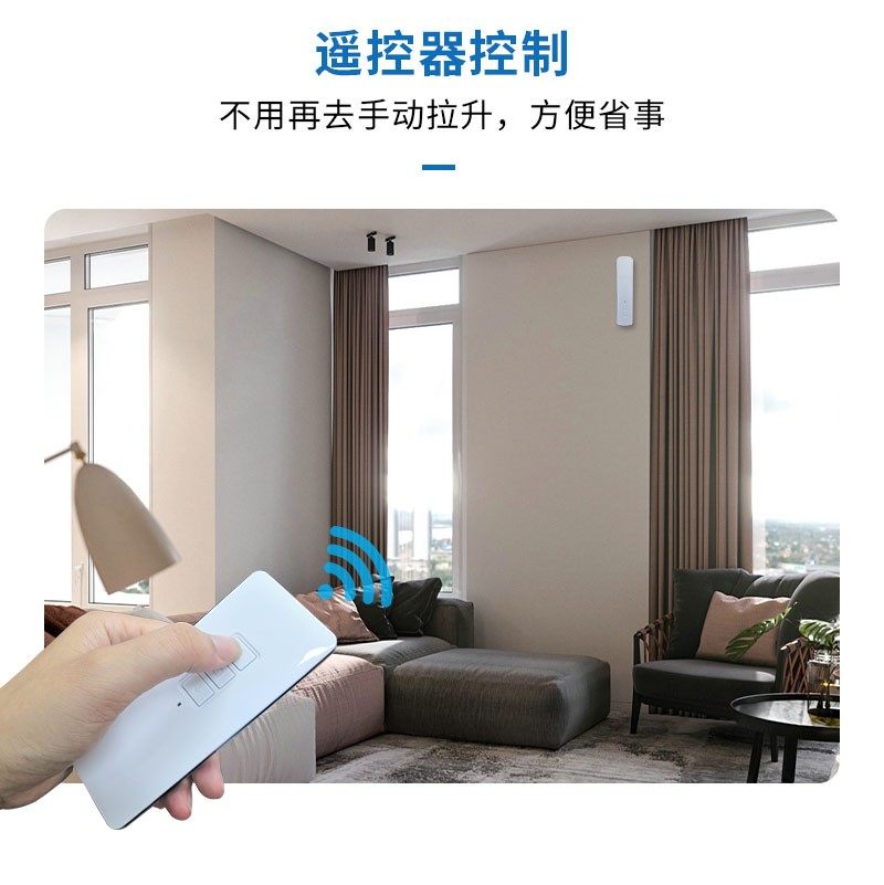 此產品適用于拉珠卷簾,可以把傳統的拉珠卷簾改變為智能電動窗簾,安裝簡單,操作方便。安裝后可通過遙控器、語音、手機APP等控制窗簾升降。